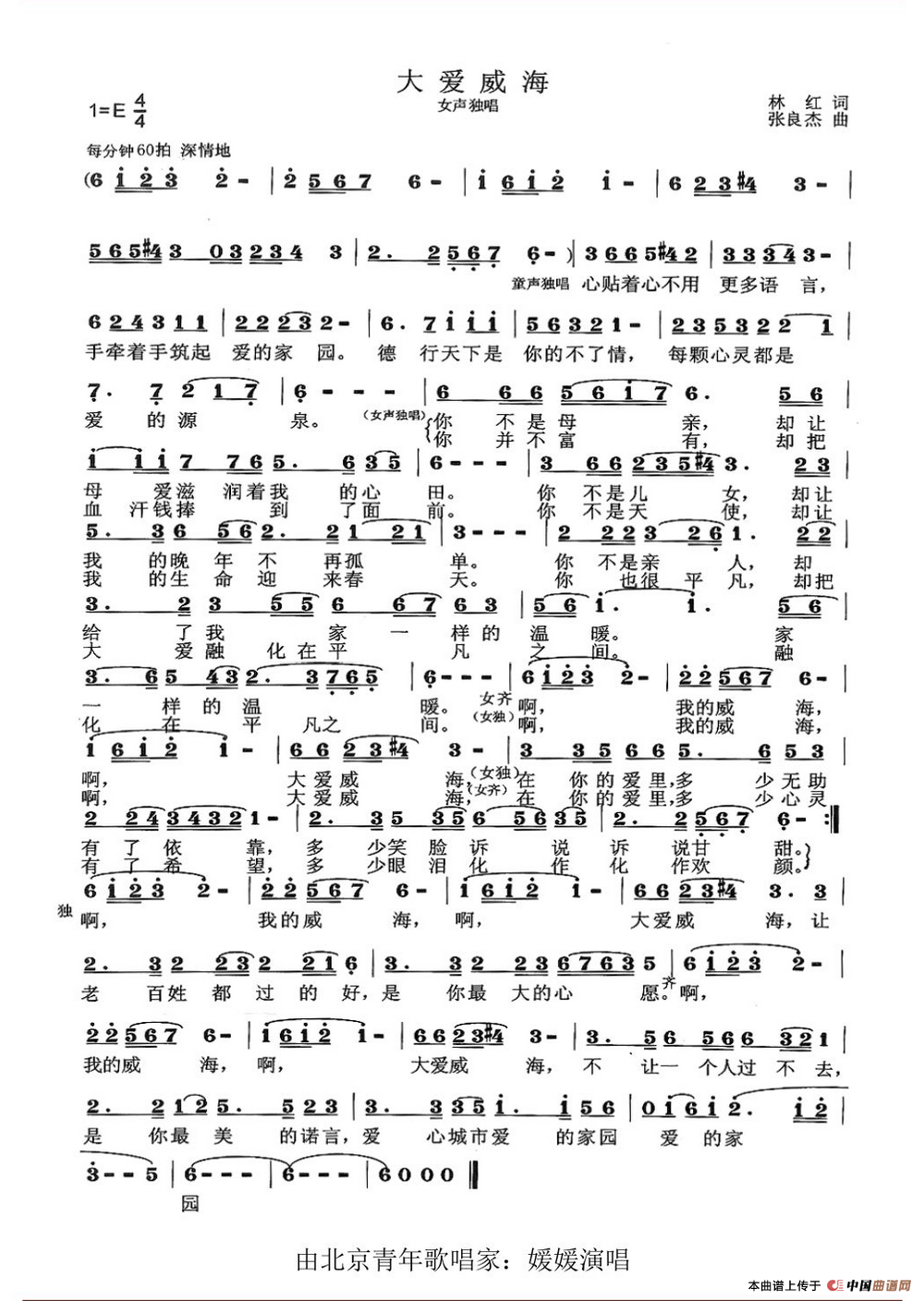 致谢:《中国曲谱网》衷心感谢作者老师馈赠原版歌谱!