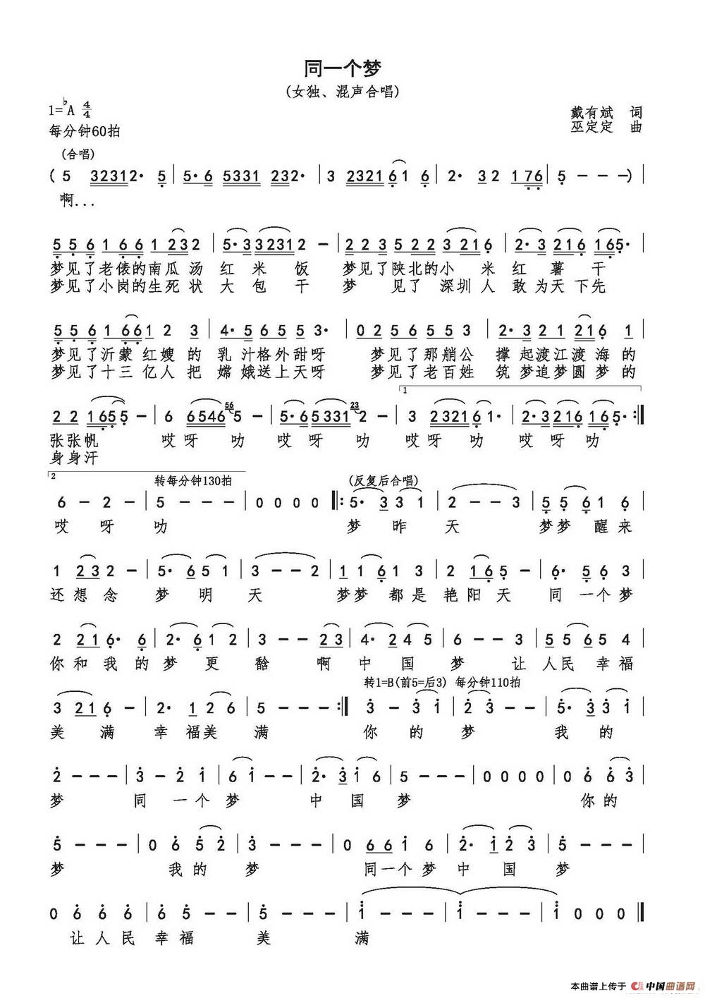 《同一个梦》文本歌词