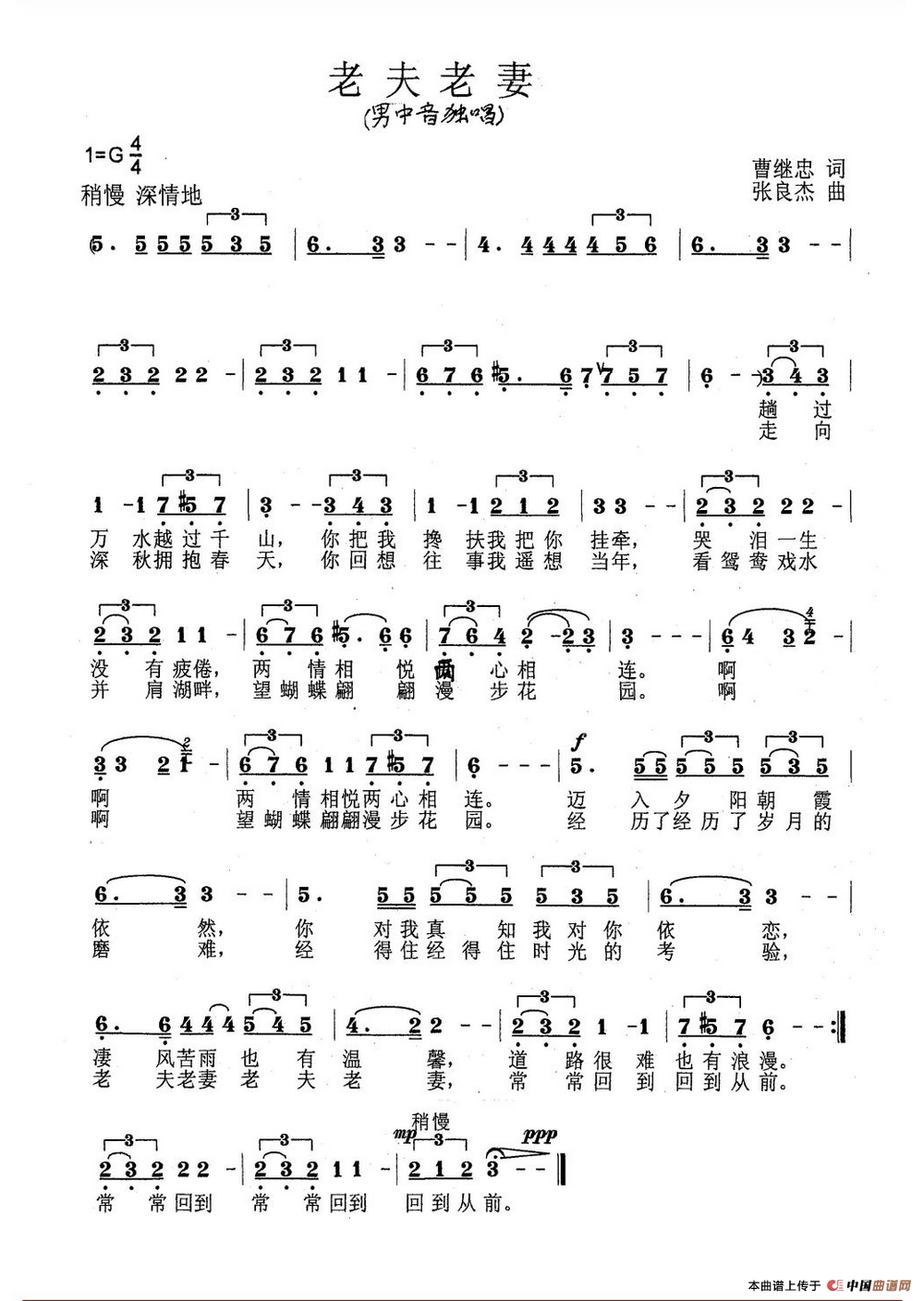 致谢:《中国曲谱网》衷心感谢作者老师馈赠原版歌谱!