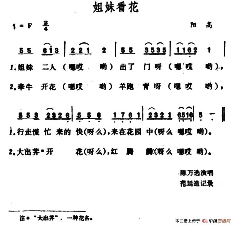 作曲:山西 阳高小调 来源:《中国曲谱网》 上传:秋叶起舞