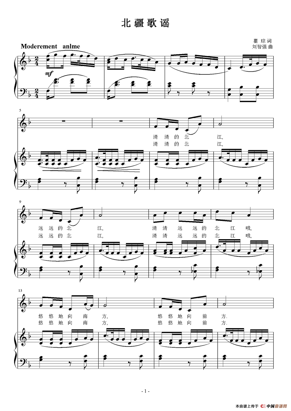 致谢:《中国曲谱网》衷心感谢作者老师馈赠原版歌谱!