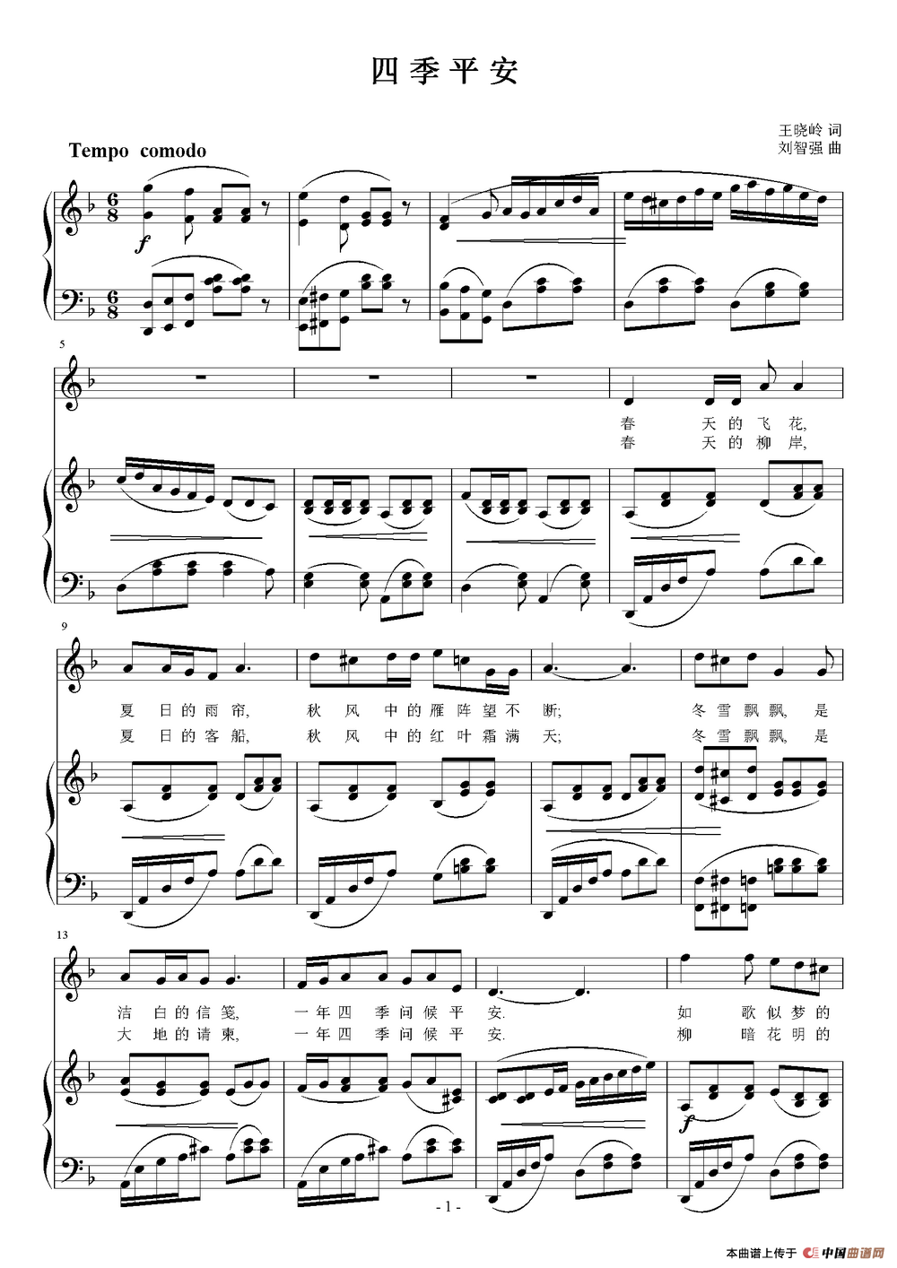 致谢:《中国曲谱网》衷心感谢作者老师馈赠原版歌谱!