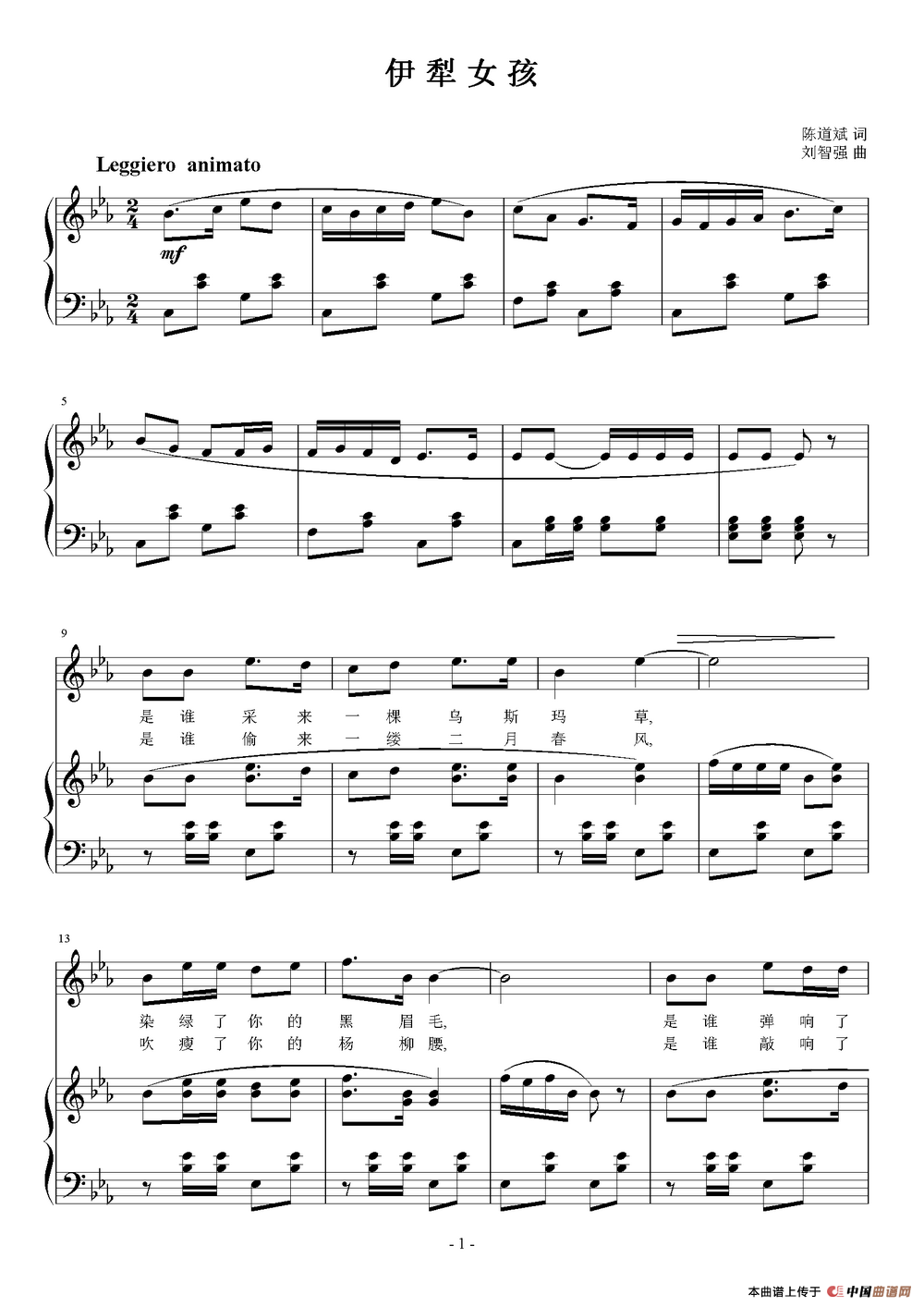 伊犁女孩(陈道斌词 刘智强曲 正谱)