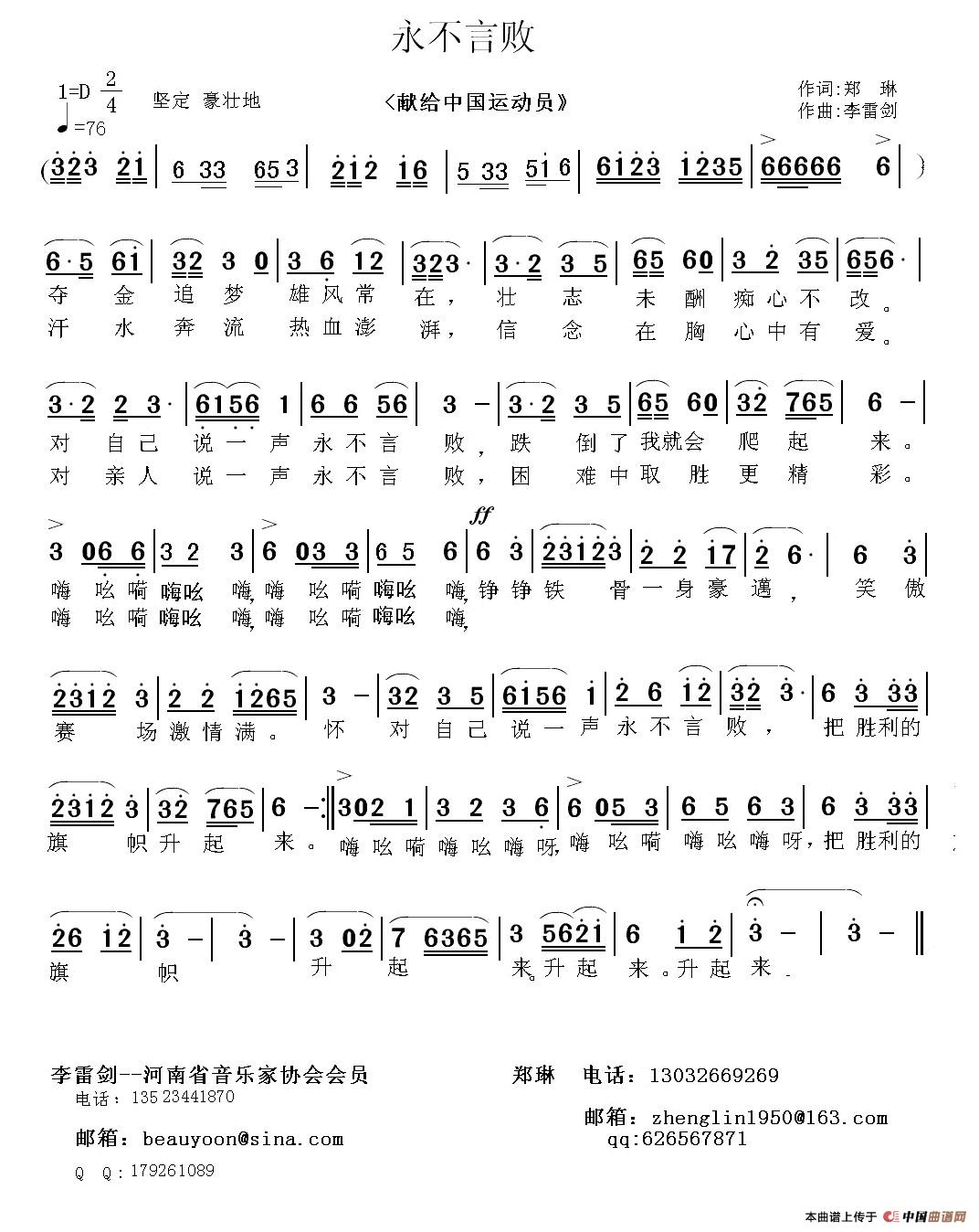 关于《永不言败》曲谱的评论