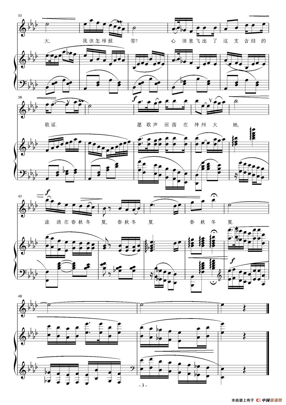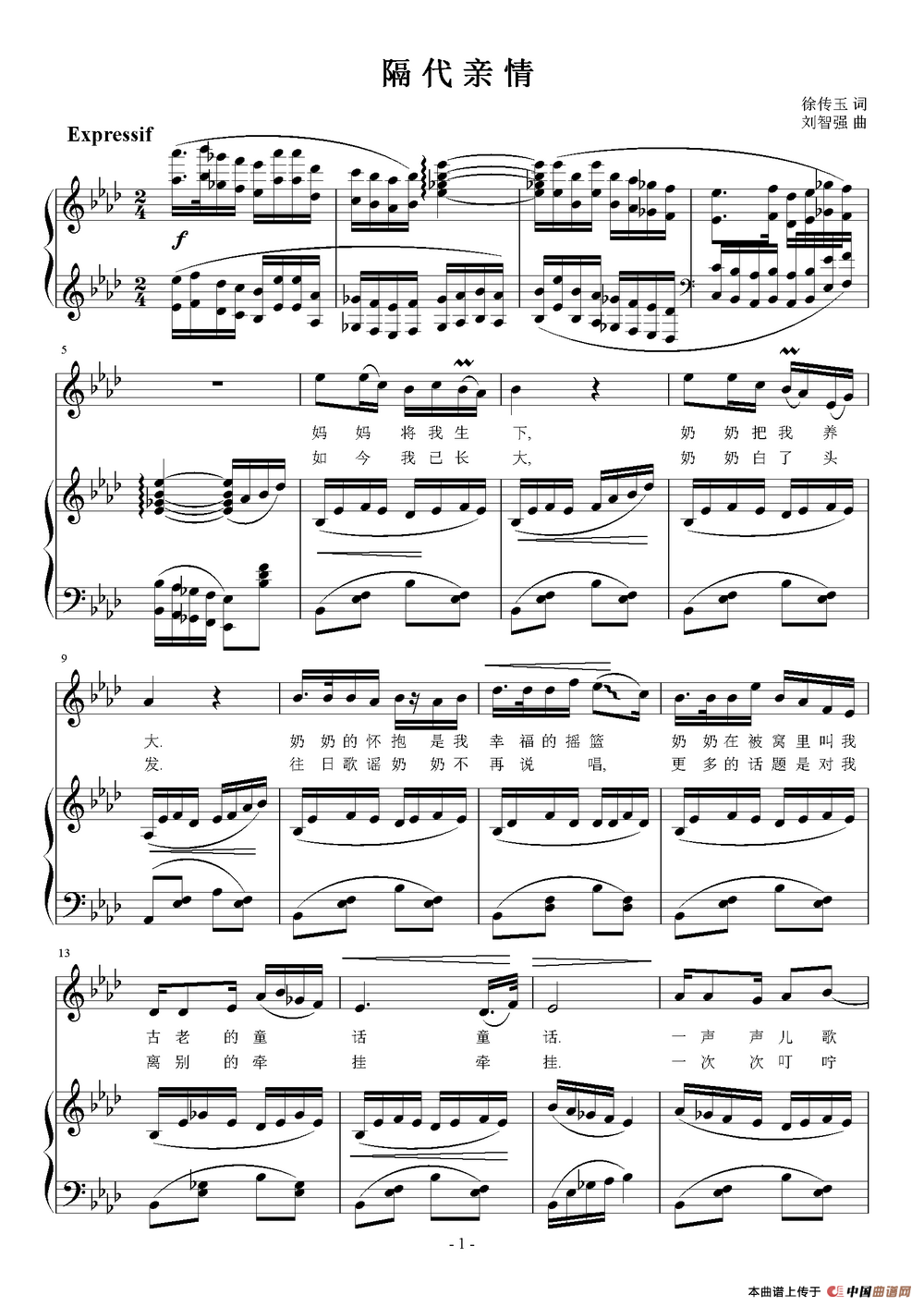 致谢:《中国曲谱网》衷心感谢作者老师馈赠原版歌谱!
