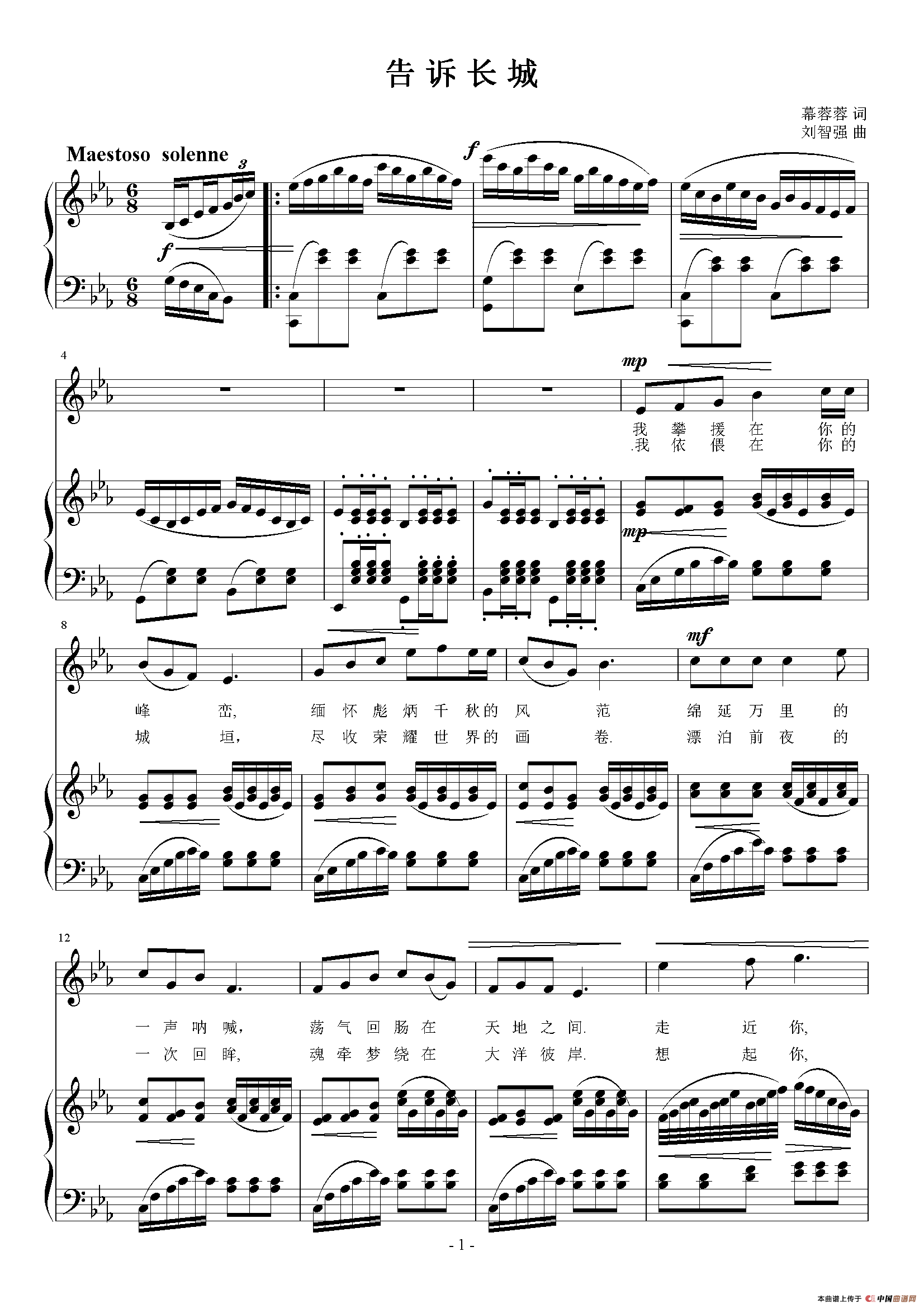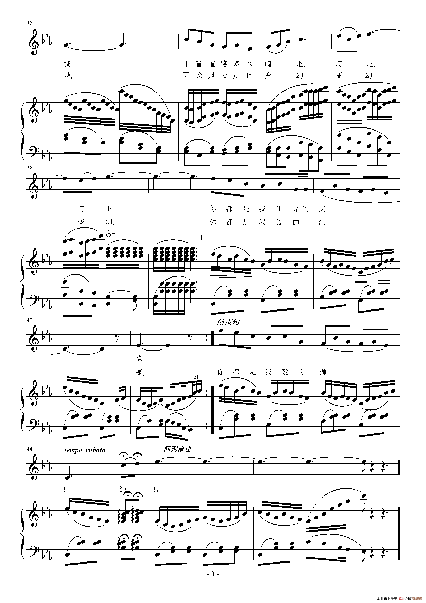 致谢:《中国曲谱网》衷心感谢作者老师馈赠原版歌谱!