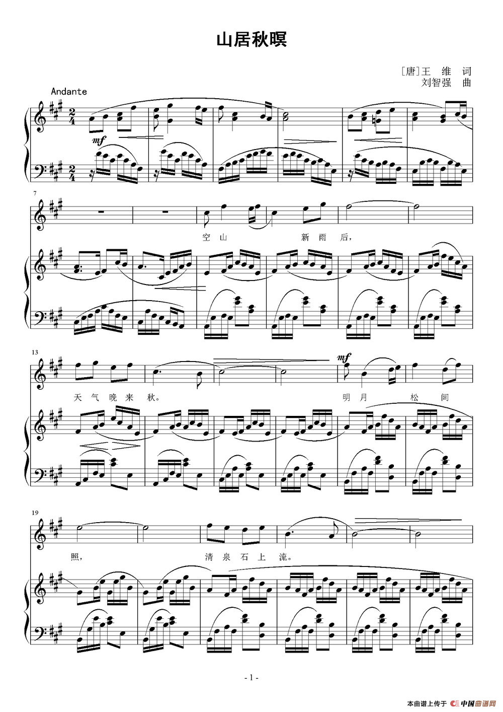 山居秋暝([唐]王维词 刘智强曲 正谱)
