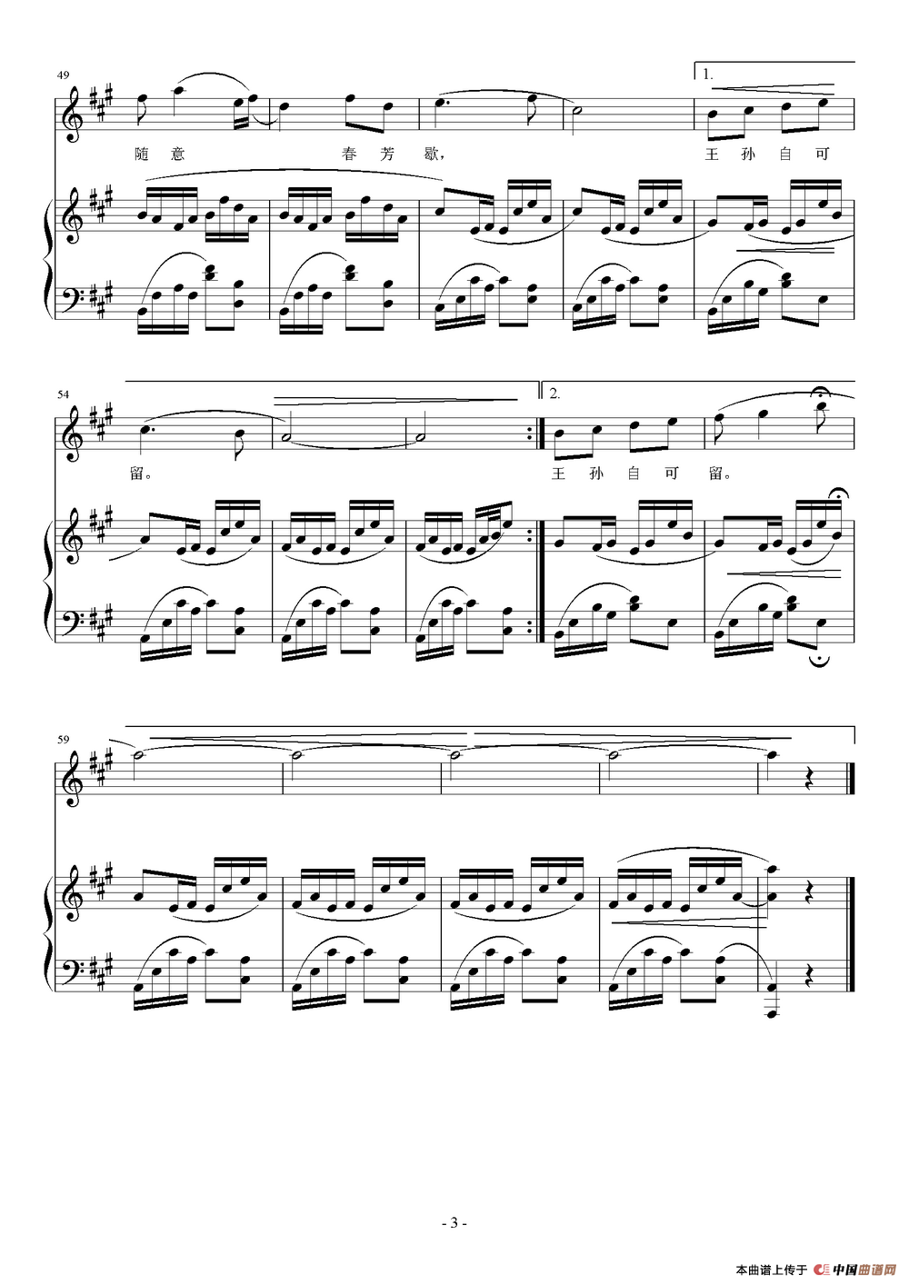 致谢:《中国曲谱网》衷心感谢作者老师馈赠原版歌谱!