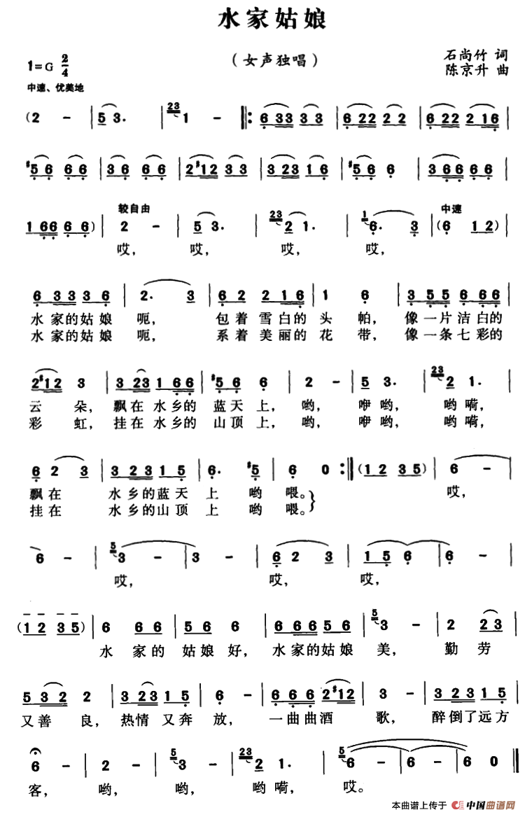 作词:石尚竹 作曲:/陈京升 来源:《中国曲谱网》 上传:秋叶起舞