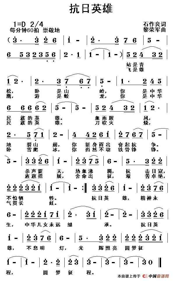 关于《抗日英雄》曲谱的评论