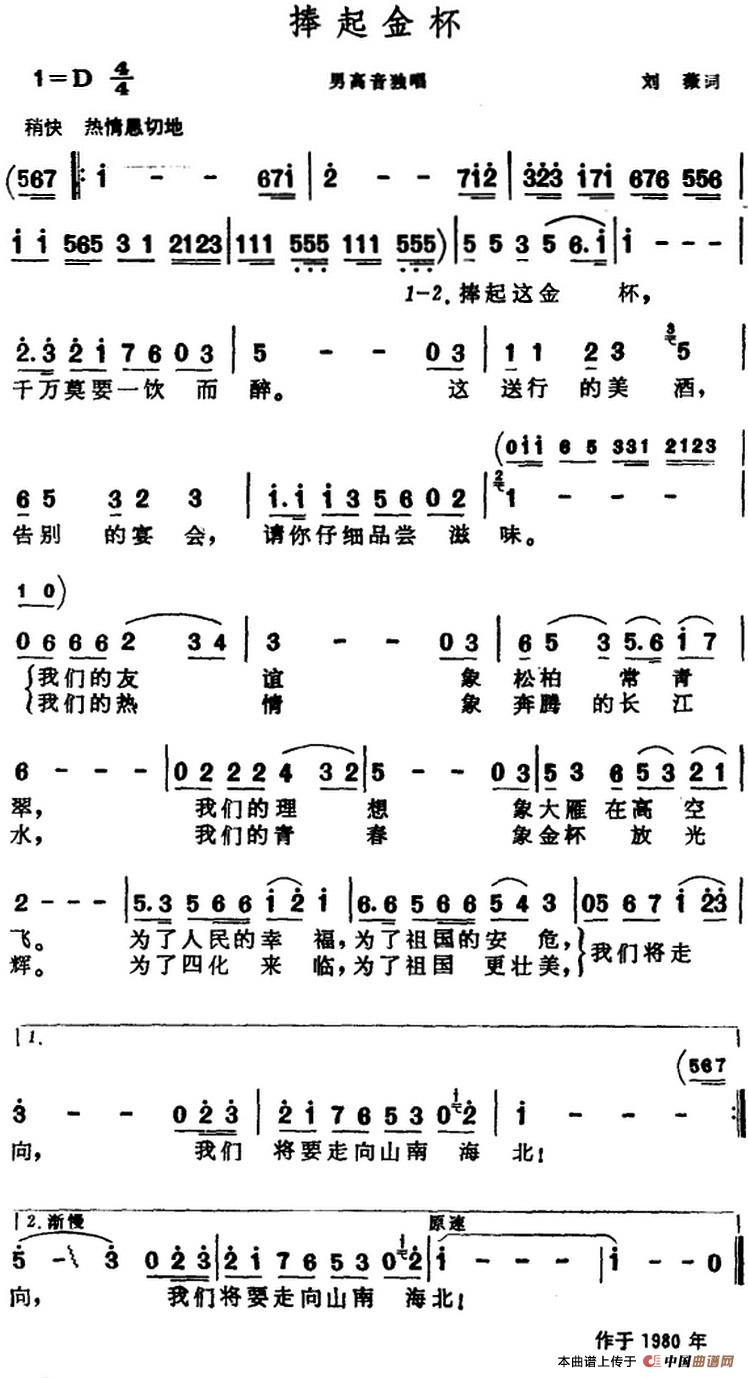 选自《战友之歌·晨耕歌曲选》,男高音独唱。