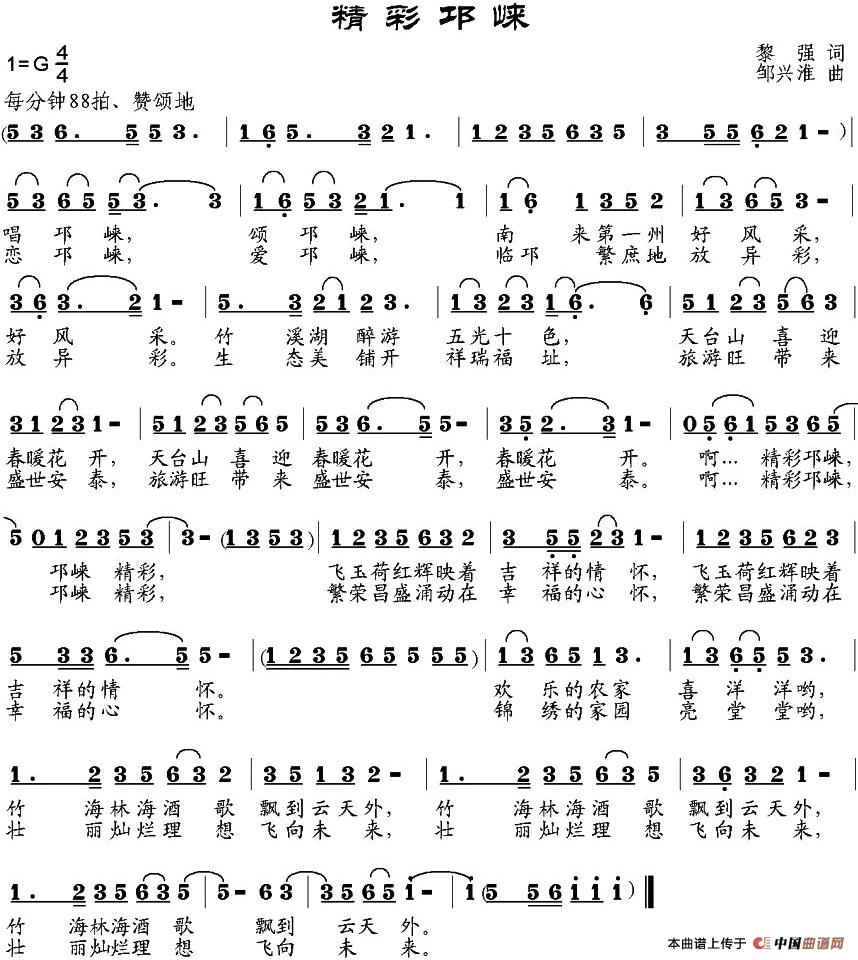 关于《精彩邛崃》曲谱的评论