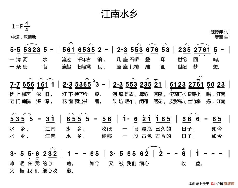 关于《江南水乡》曲谱的评论