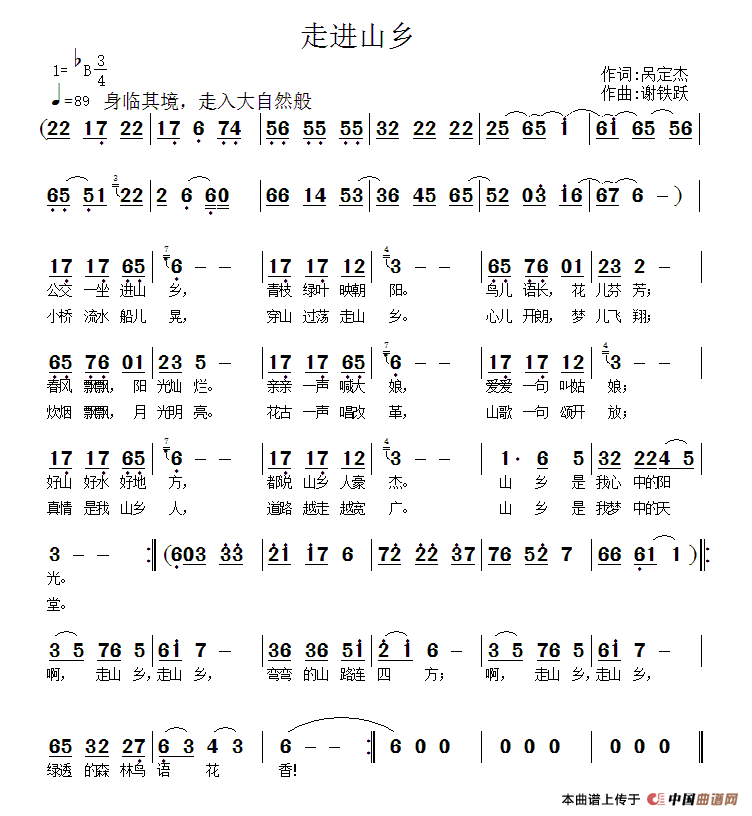 关于《走进山乡》曲谱的评论