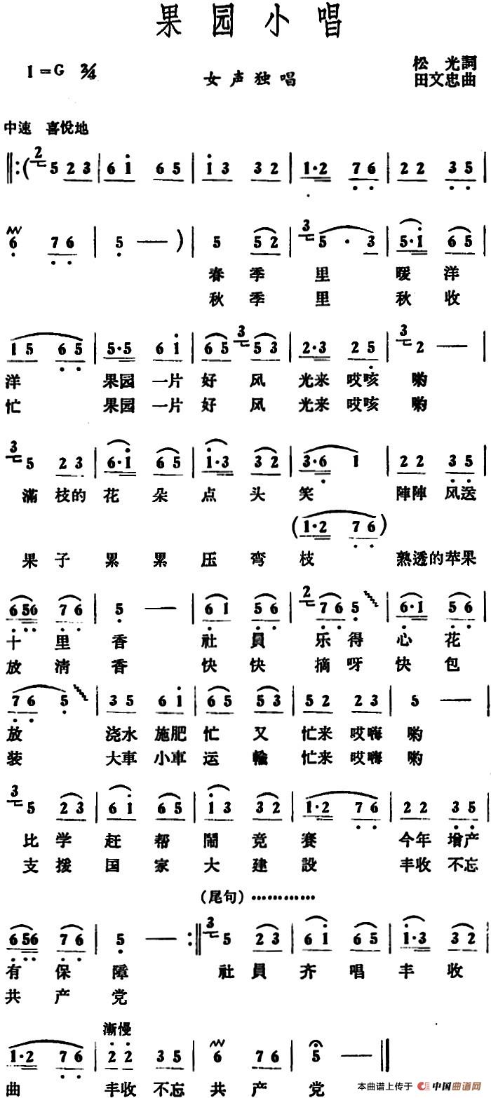 作词:松光 作曲:田文忠 来源:中国曲谱网 上传:热爱音乐88
