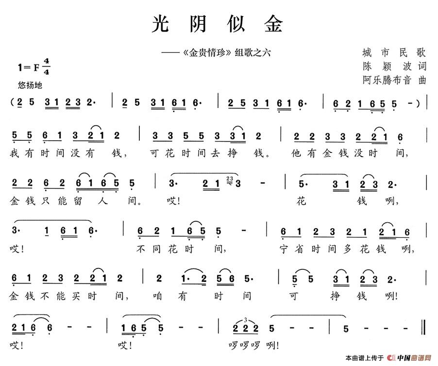 关于《光阴似金》曲谱的评论