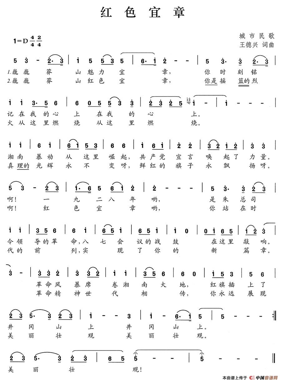 关于《红色宜章》曲谱的评论
