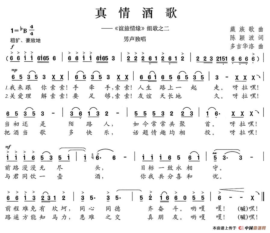 关于《真情酒歌》曲谱的评论