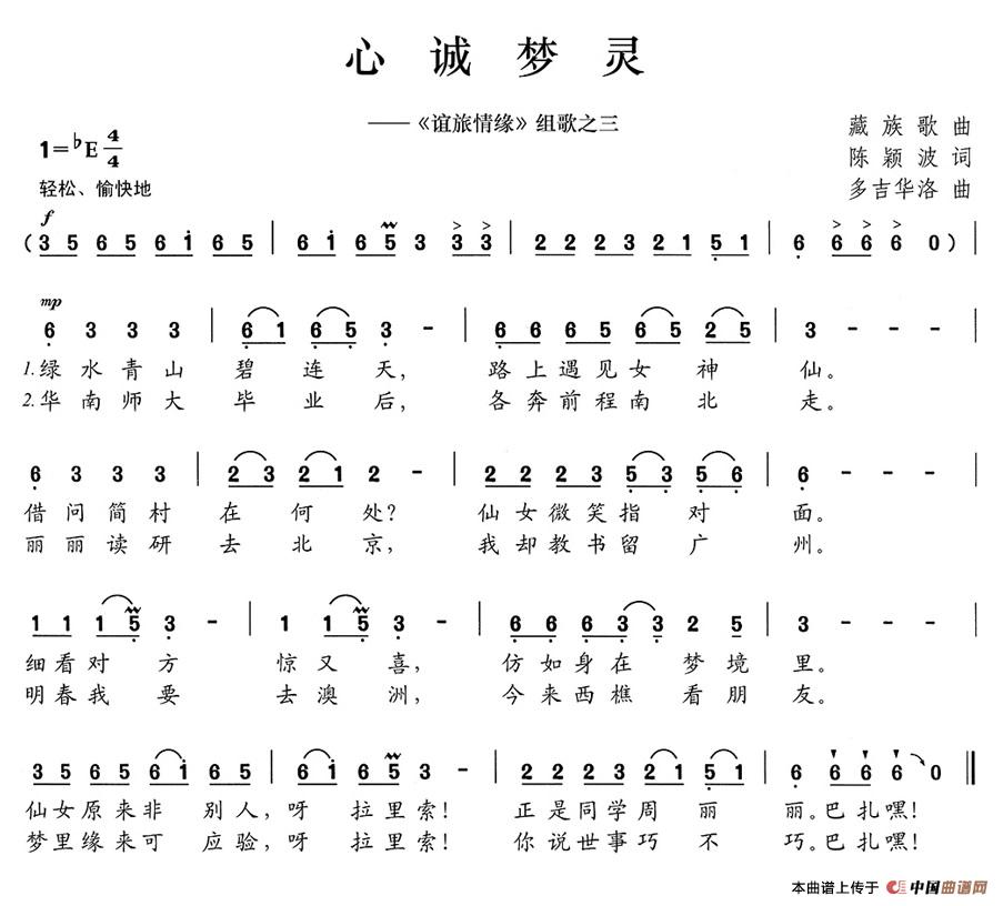 关于《心诚梦灵》曲谱的评论