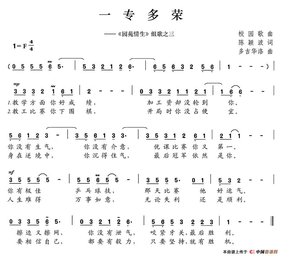关于《一专多荣》曲谱的评论