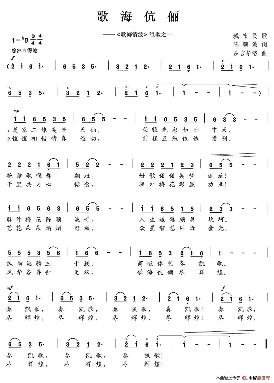 关于《歌海伉俪(《歌海情波》组歌之一)》曲谱的评论