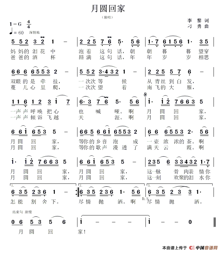 致谢:《中国曲谱网》衷心感谢作者老师馈赠原版歌谱!