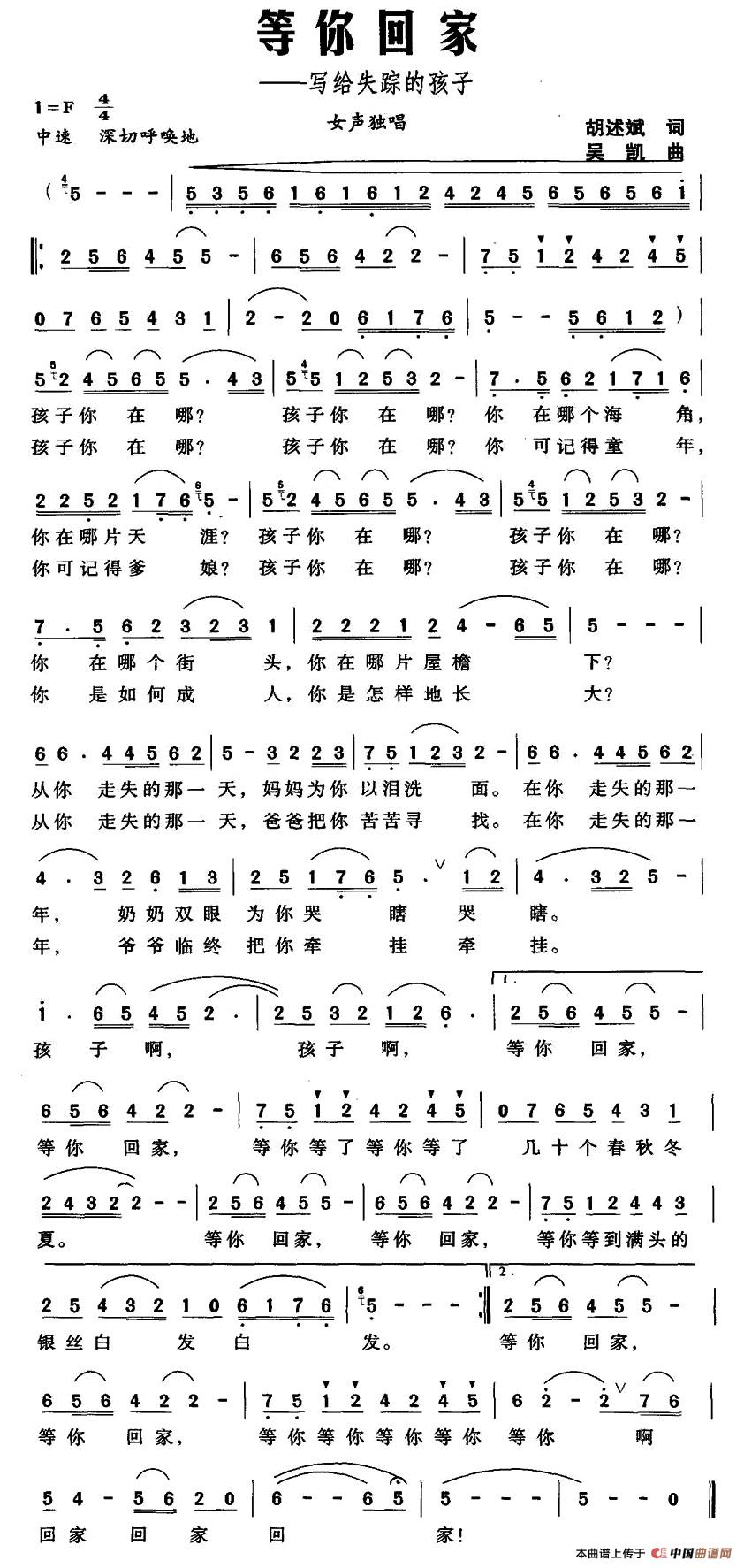 当前位置: 首页 民歌曲谱 四字歌名 等你回家(写给失踪的孩子)