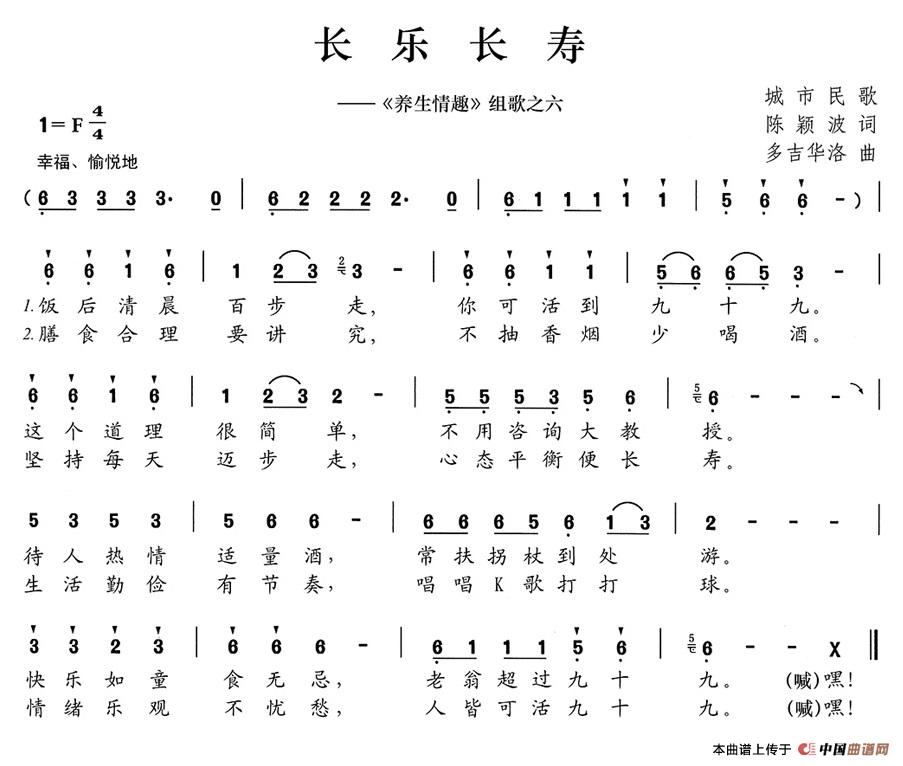 关于《长乐长寿(《养生情趣》组歌之六)》曲谱的评论