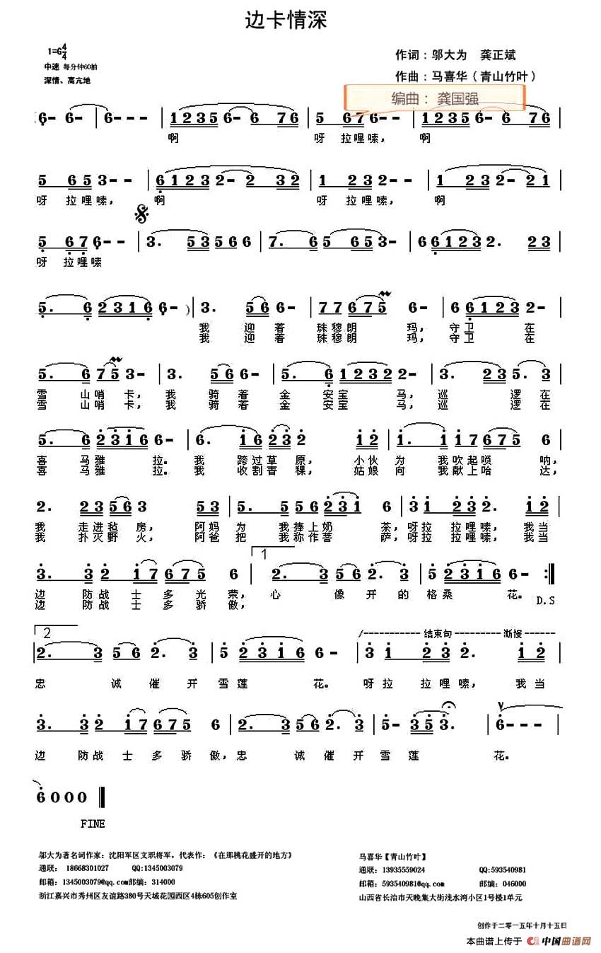 关于《边卡情深》曲谱的评论