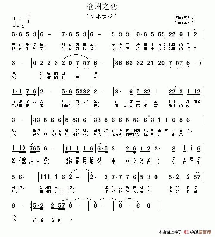 致谢:《中国曲谱网》衷心感谢作者老师馈赠原版歌谱!
