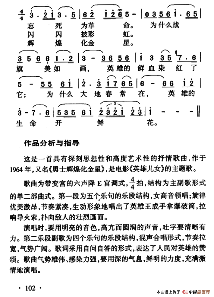 关于《英雄赞歌》曲谱的评论