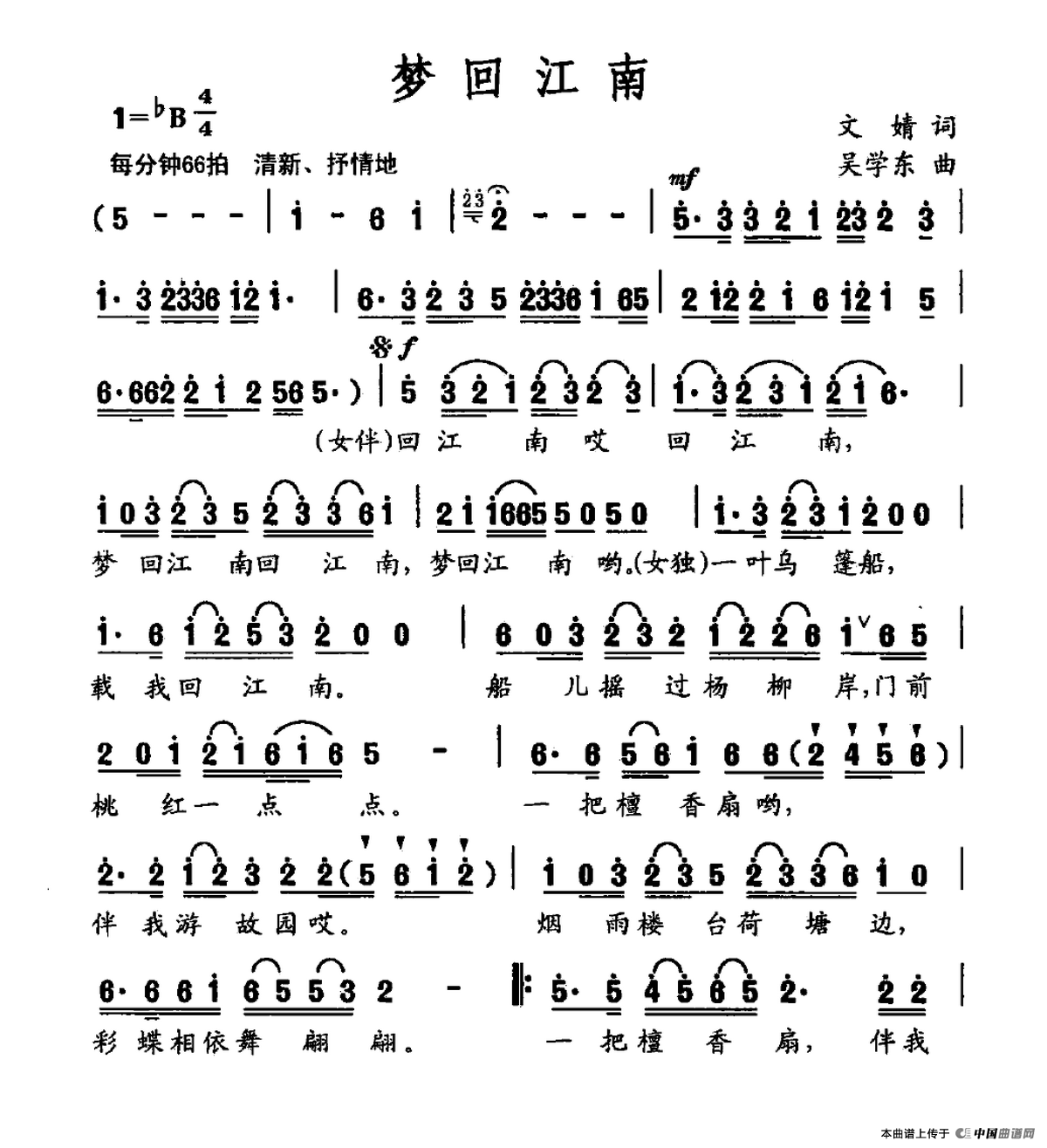 当前位置: 首页 民歌曲谱 四字歌名 梦回江南(文婧词 吴学东曲)