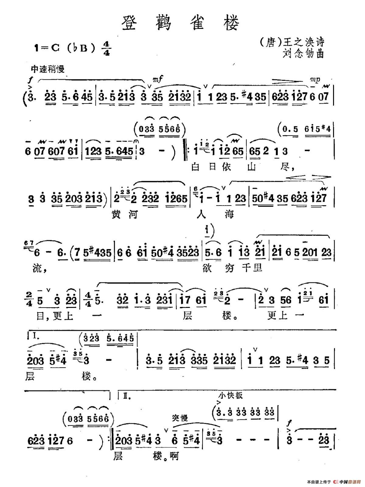 ![登鹳雀楼([唐]王之涣词 刘念劬曲)(1)_原文件名:登鹳雀楼.jpg](/Public/Uploads/2016/01/12/56949889d8c8a.jpg)