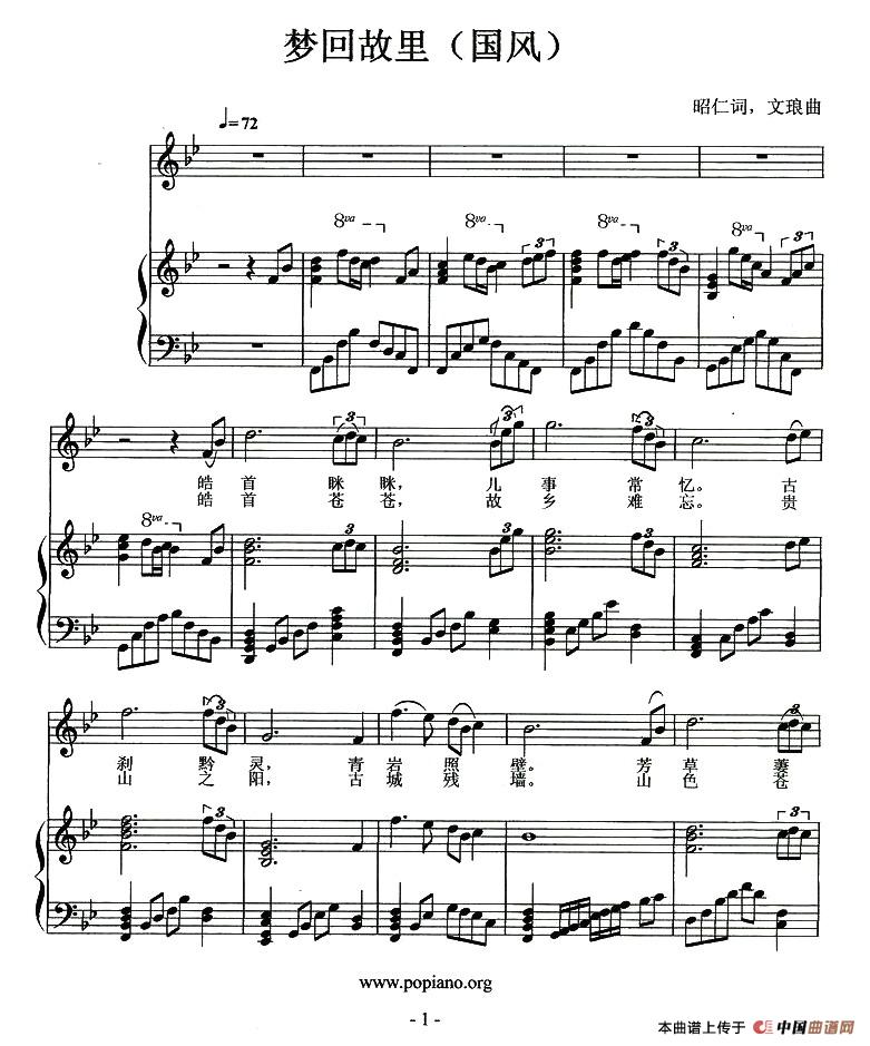 提示:在曲谱图片上单击右键,选择“图片另存为...”即可将曲谱保存到您的电脑中,打印时候可将图片插入到WORD中,调整合适大小打印即可。