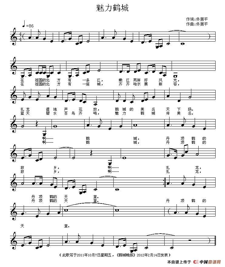 关于《魅力鹤城》曲谱的评论