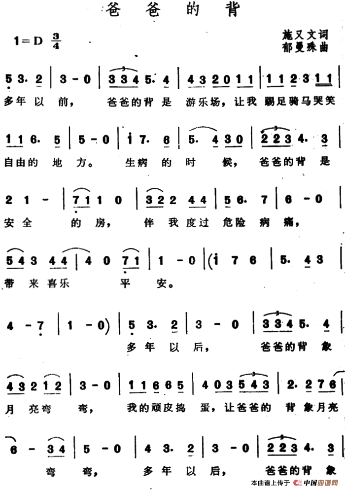 爸爸的背(施又文词 郁曼殊曲)