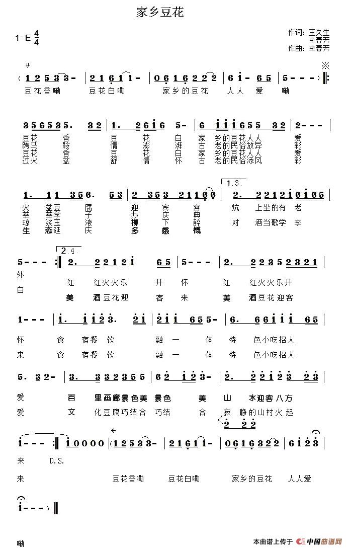 关于《家乡豆花》曲谱的评论