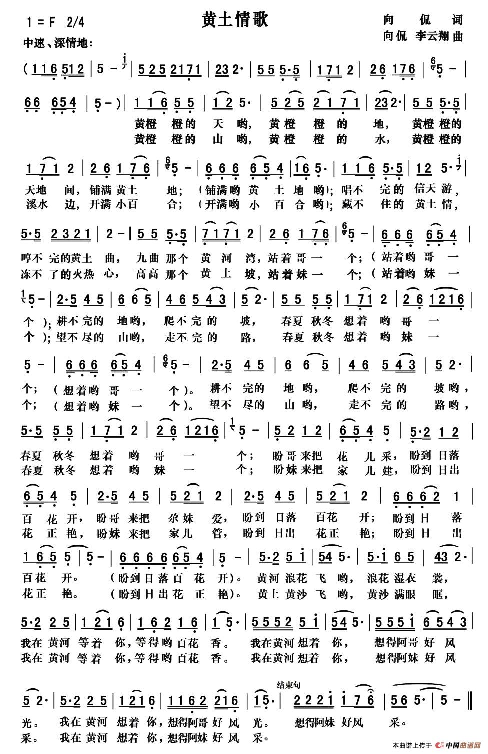 《黄土情歌》文本歌词
