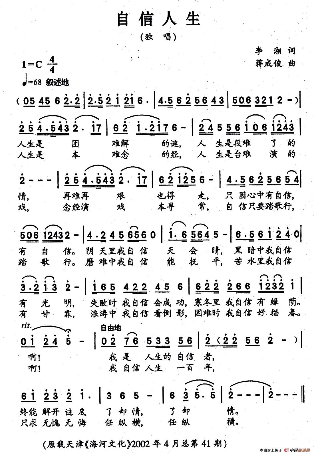 致谢:《中国曲谱网》衷心感谢作者老师馈赠原版歌谱!