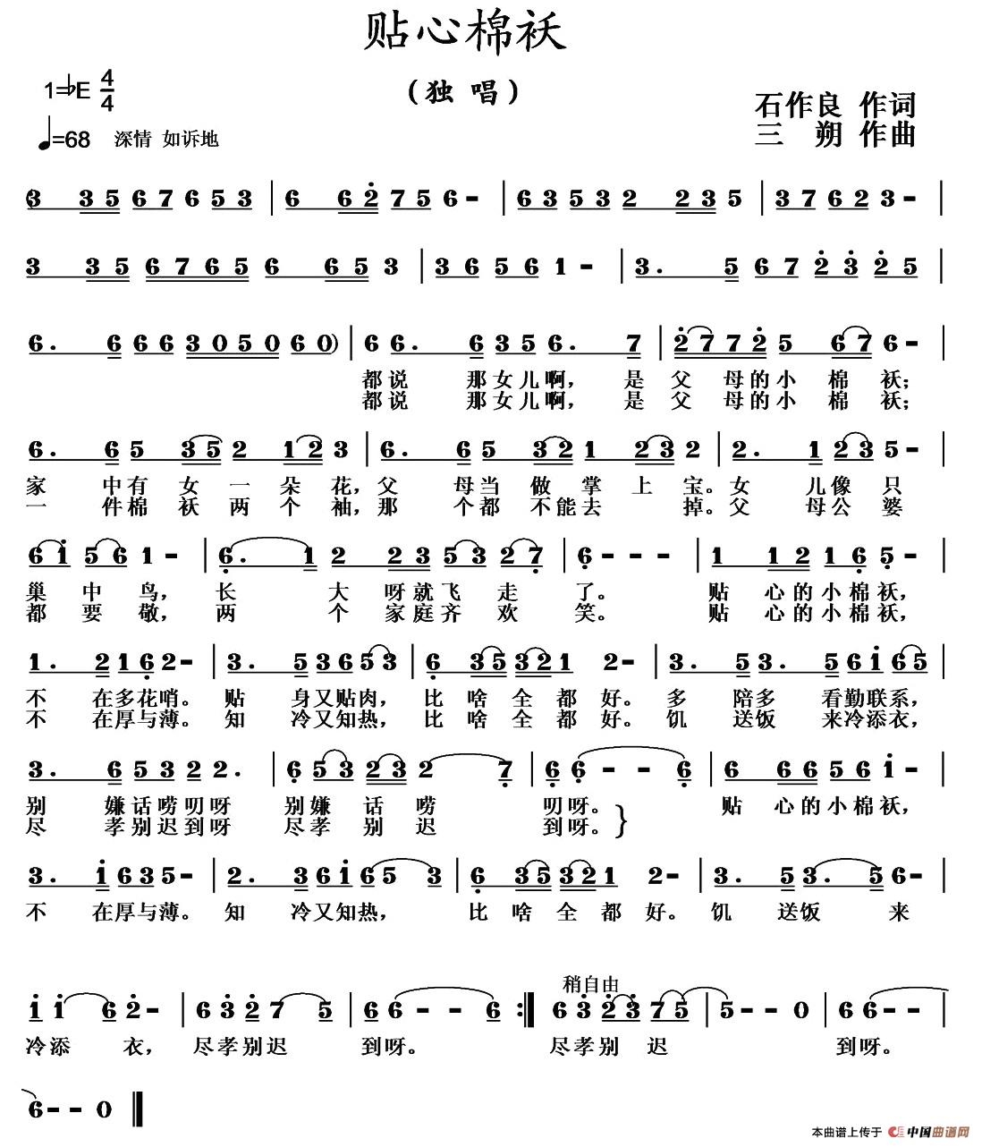 关于《贴心棉袄》曲谱的评论