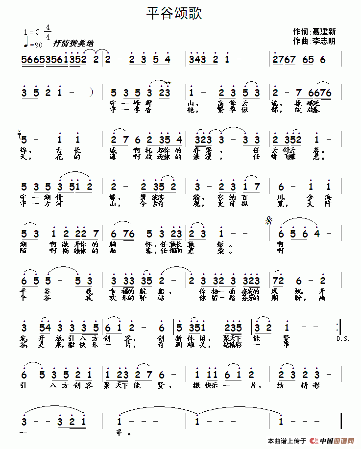 关于《平谷颂歌》曲谱的评论