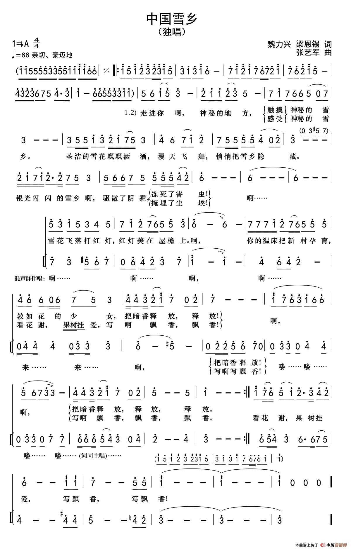关于《中国雪乡》曲谱的评论