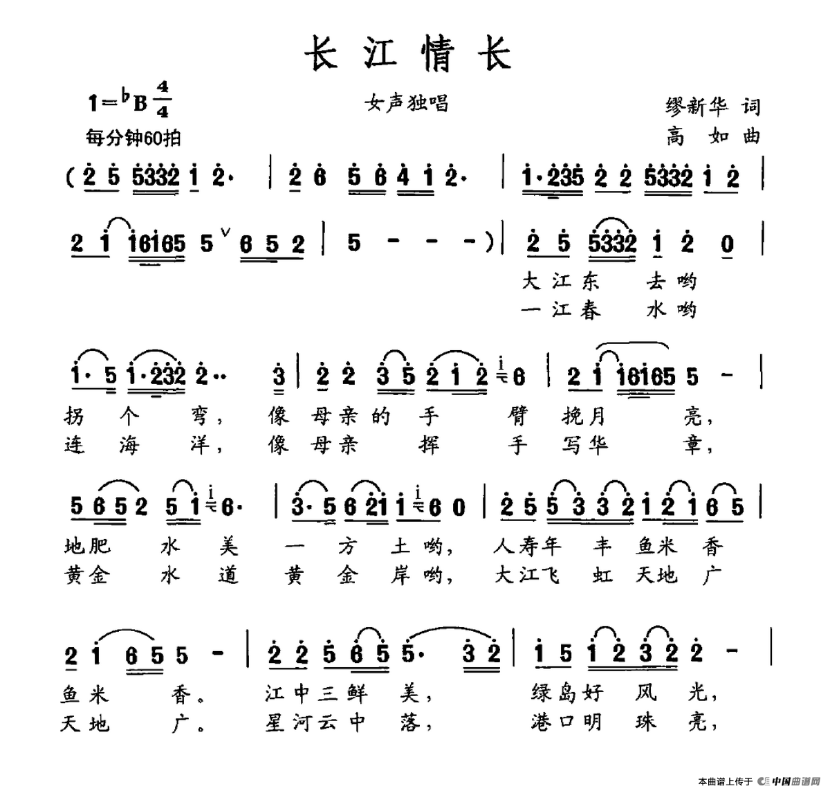 关于《长江情长》曲谱的评论