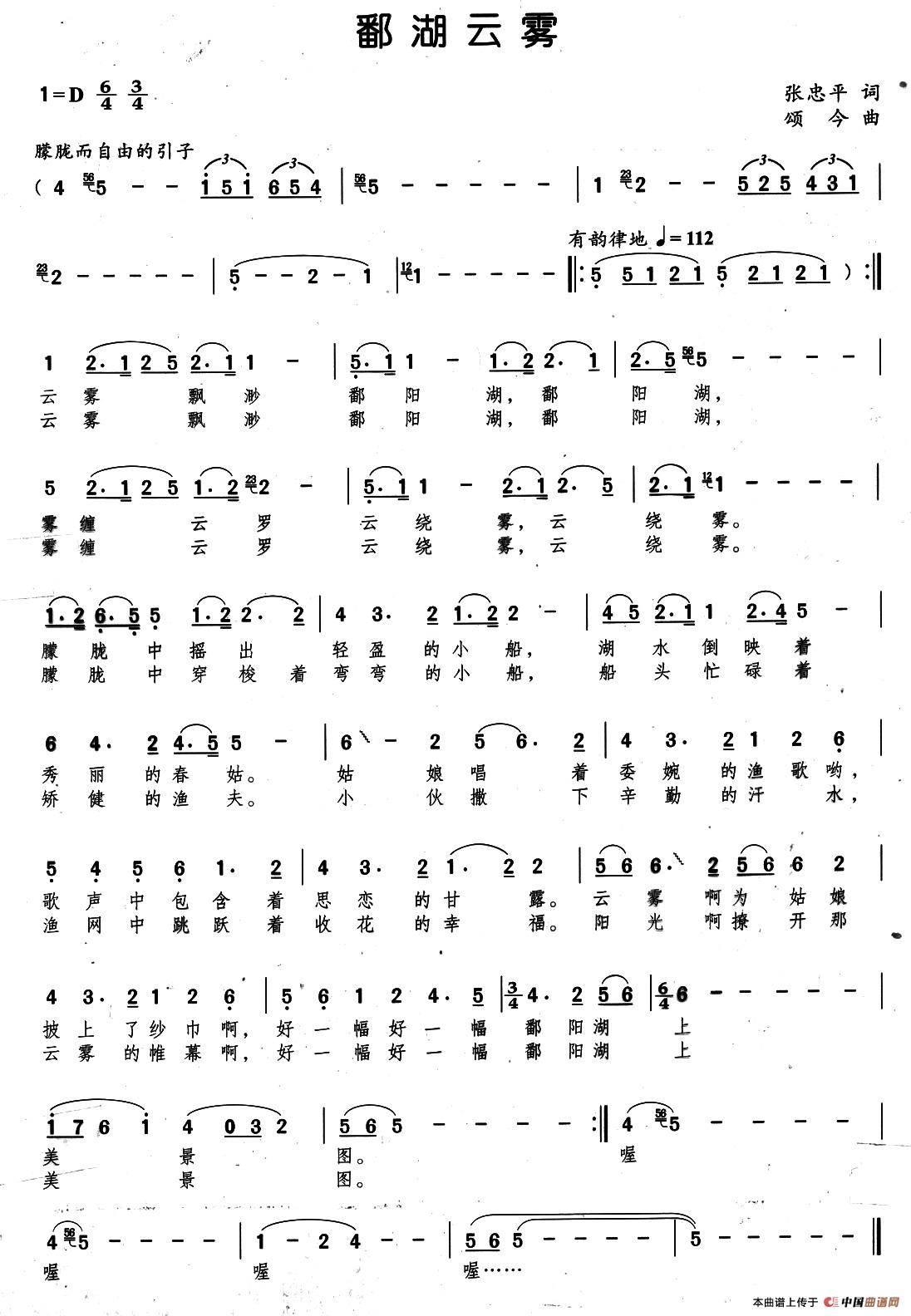 致谢:《中国曲谱网》衷心感谢作者老师馈赠原版歌谱!