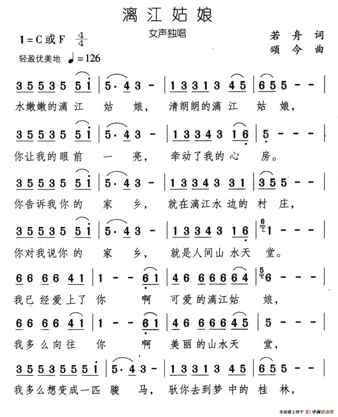 致谢:《中国曲谱网》衷心感谢作者老师馈赠原版歌谱!