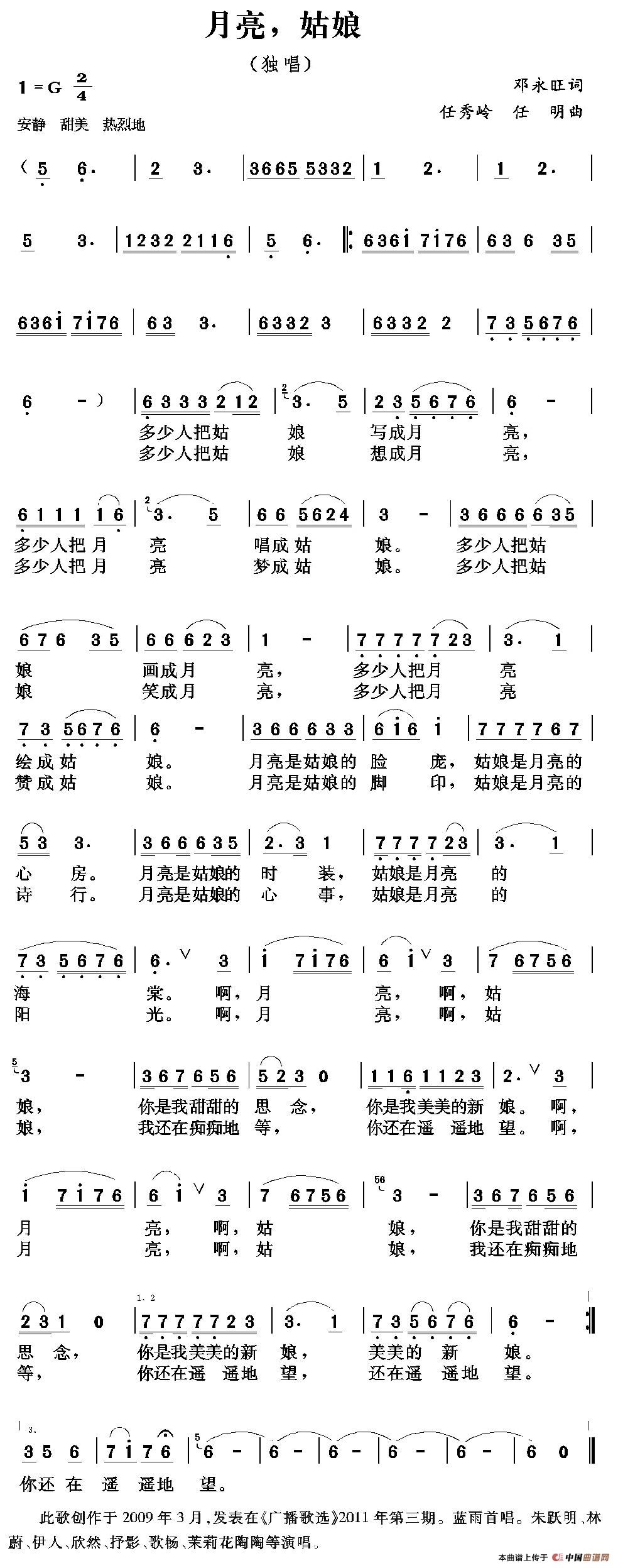 月亮,姑娘(邓永旺词 任秀岭曲)