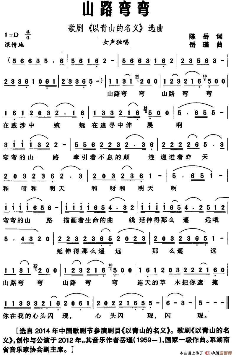 关于《山路弯弯》曲谱的评论