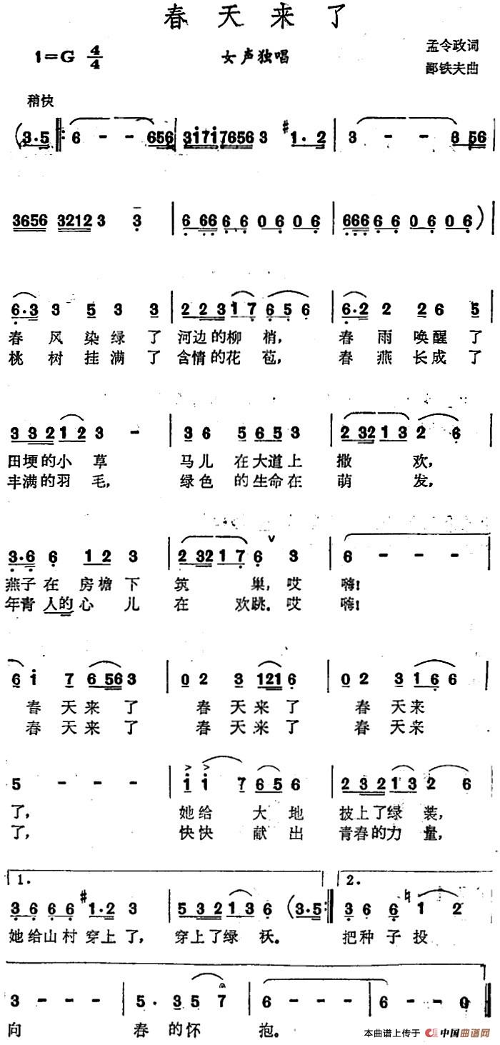 作词:孟令政 作曲:鄙铁夫 来源:中国曲谱网 上传:热爱音乐88