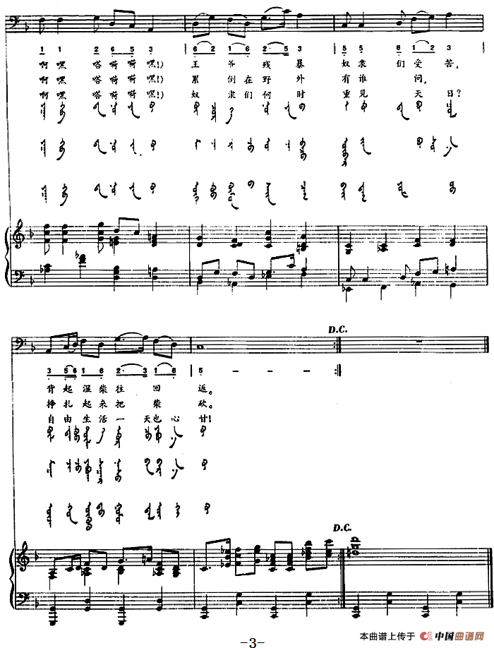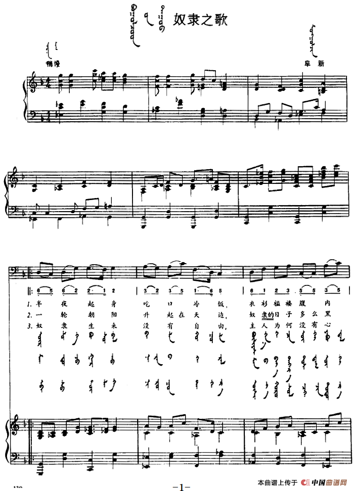 奴隶之歌(蒙汉文对照、正谱)