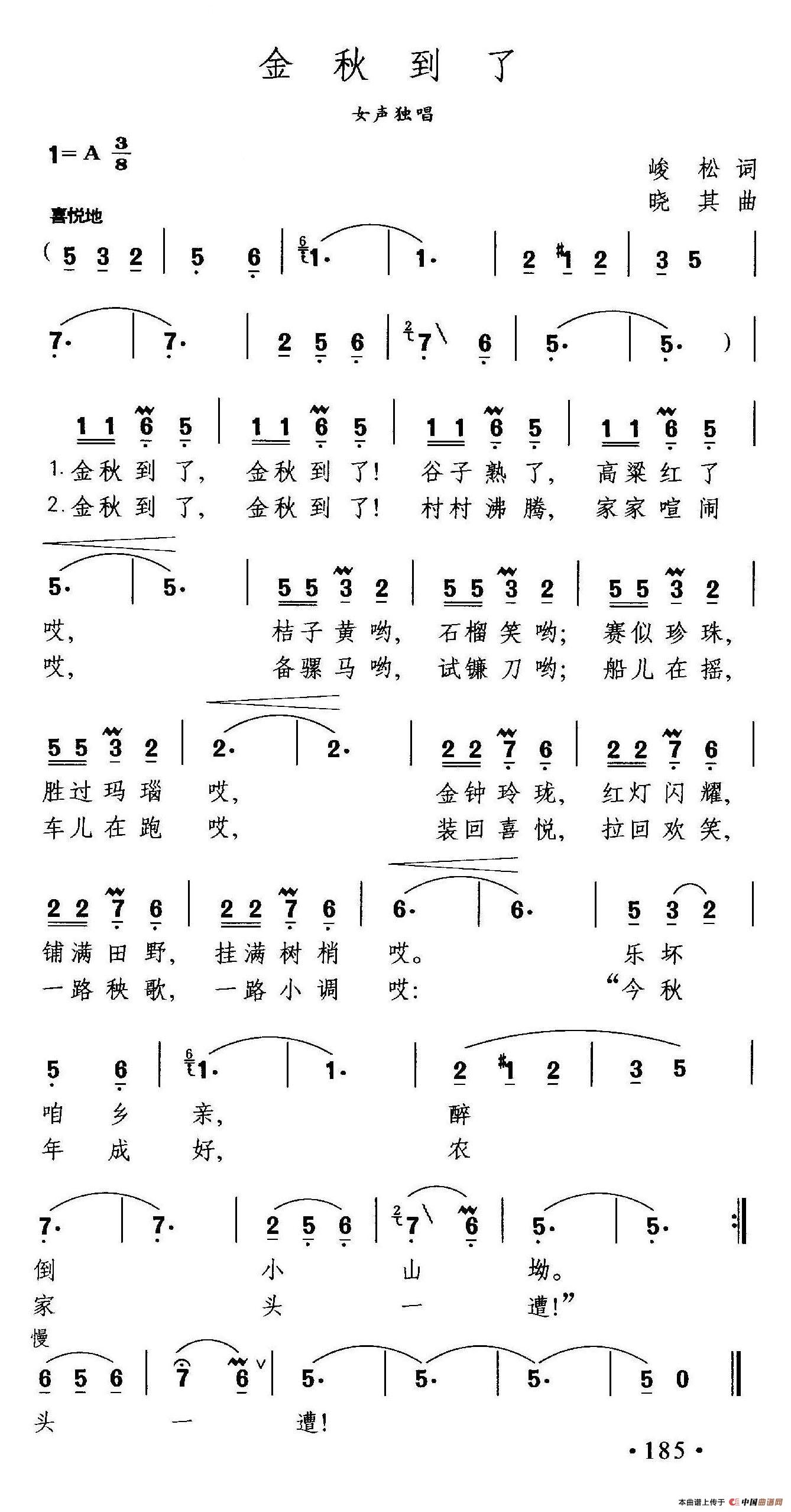 关于《金秋到了》曲谱的评论